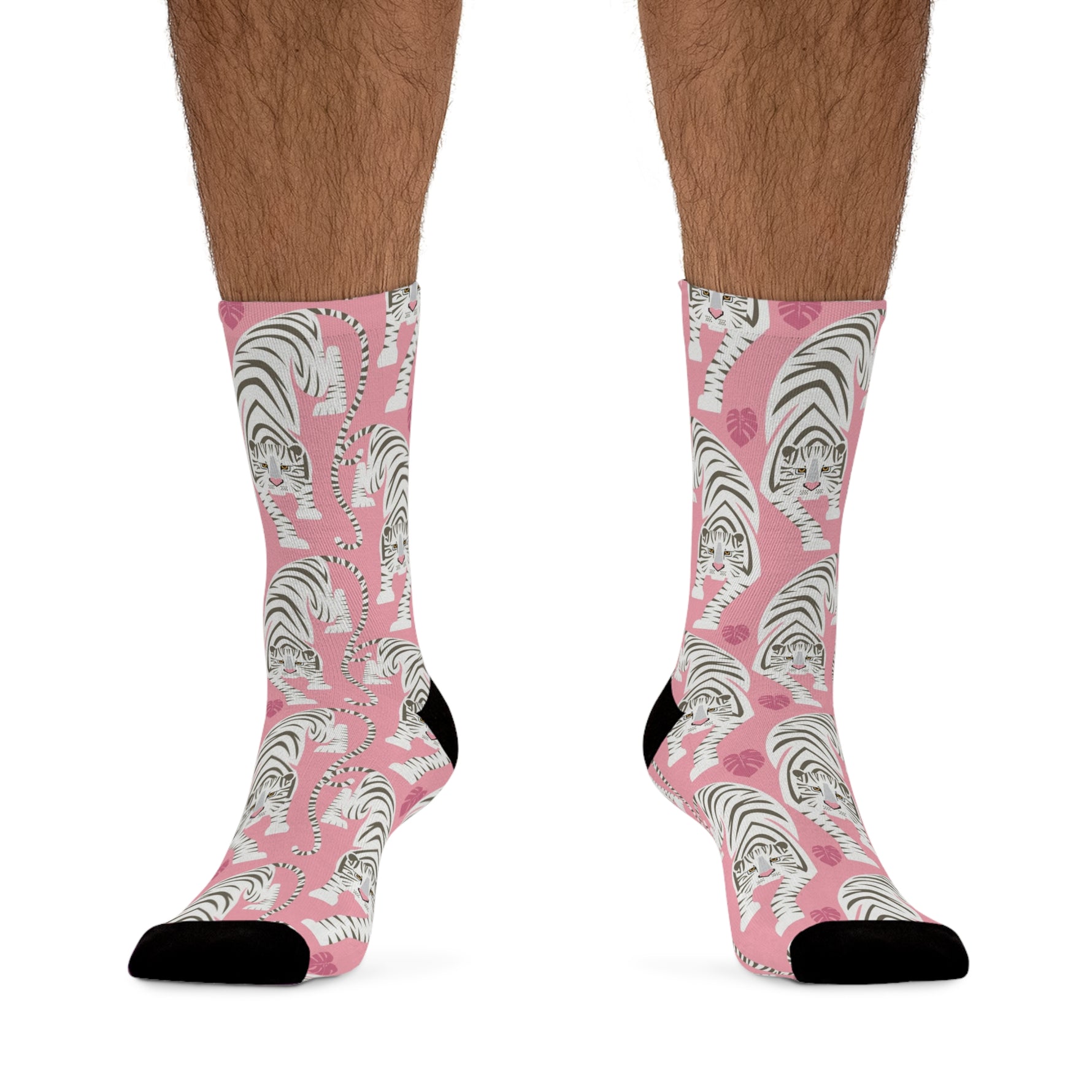 Feline Ferocious. Pink Socks with White Tiger